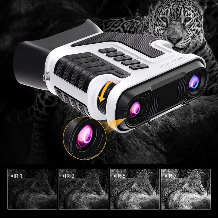 A night vision device is used to enhance one's ability to see in low light or dark environments. Our WOSPORTS night vision binoculars enhance with starlight-level CMOS sensor and 3W 850nm Infrared light, which help you to see clearly in darkness.