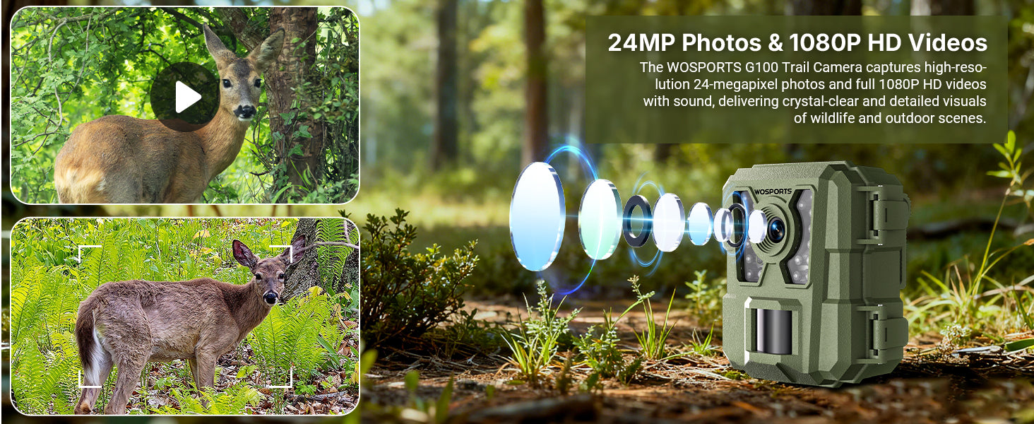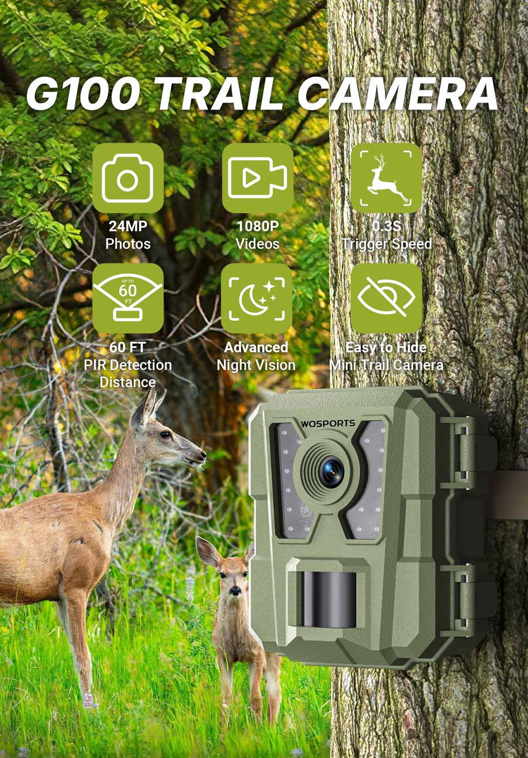 The WOSPORTS game camera is designed to be very small and lightweight, making it easy to carry. The optimized design makes the small trail cam easy to set up and operate.