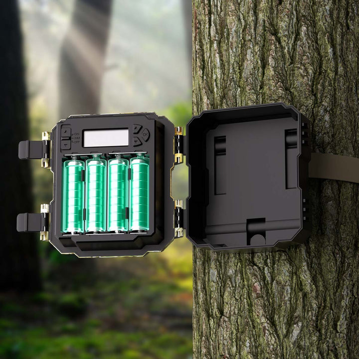 This mini game camera only needs 4 AA batteries, which reduces the size and weight of the camera. Extremely low power consumption in standby mode allows for the camera to be put on the field longer without having to swap out batteries.