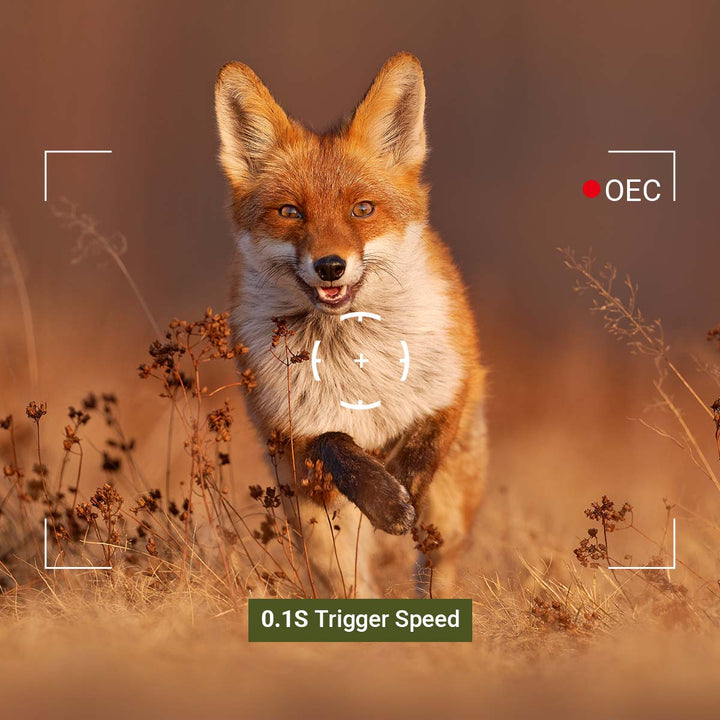 With a quick 0.1-second trigger time, the trail camera for wildlife ensures no moment is missed, capturing fast-moving animals and quickly passing objects effortlessly.