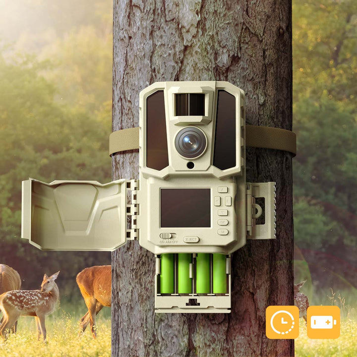 The deer camera features a powerful battery system supporting extended standby time, reducing the hassle of frequent battery changes and ideal for long-term outdoor use.