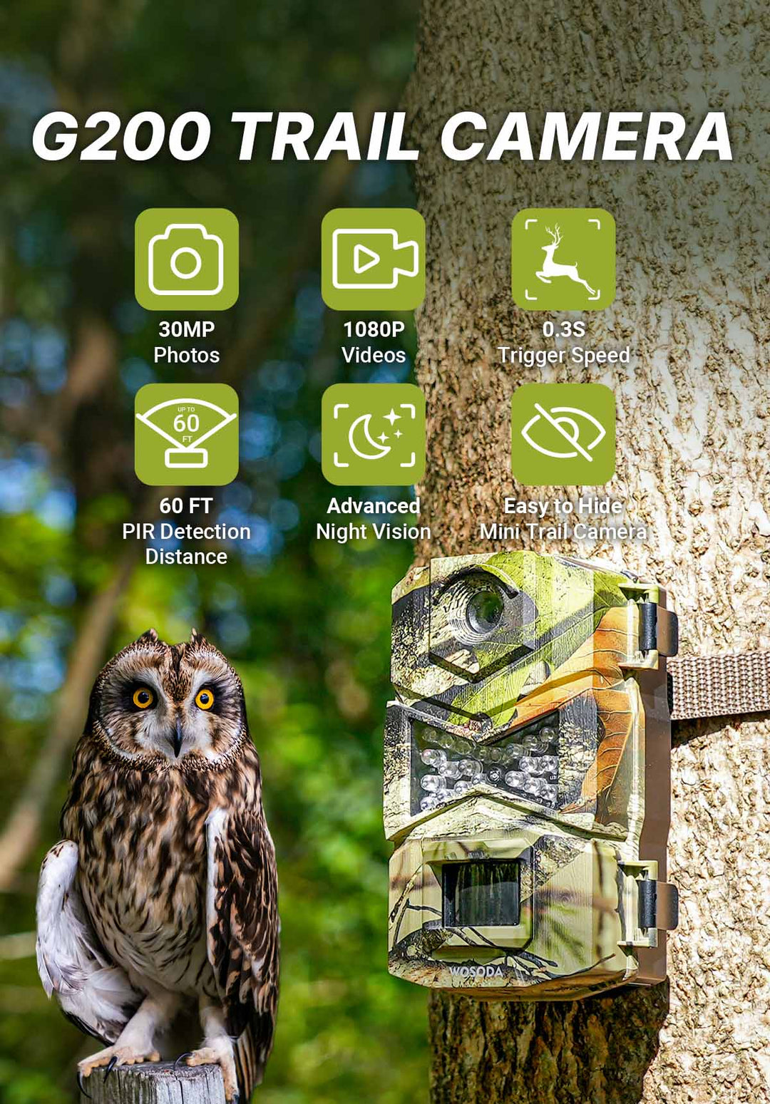 WOSPORTS G200 Trail Camera 4 Pack