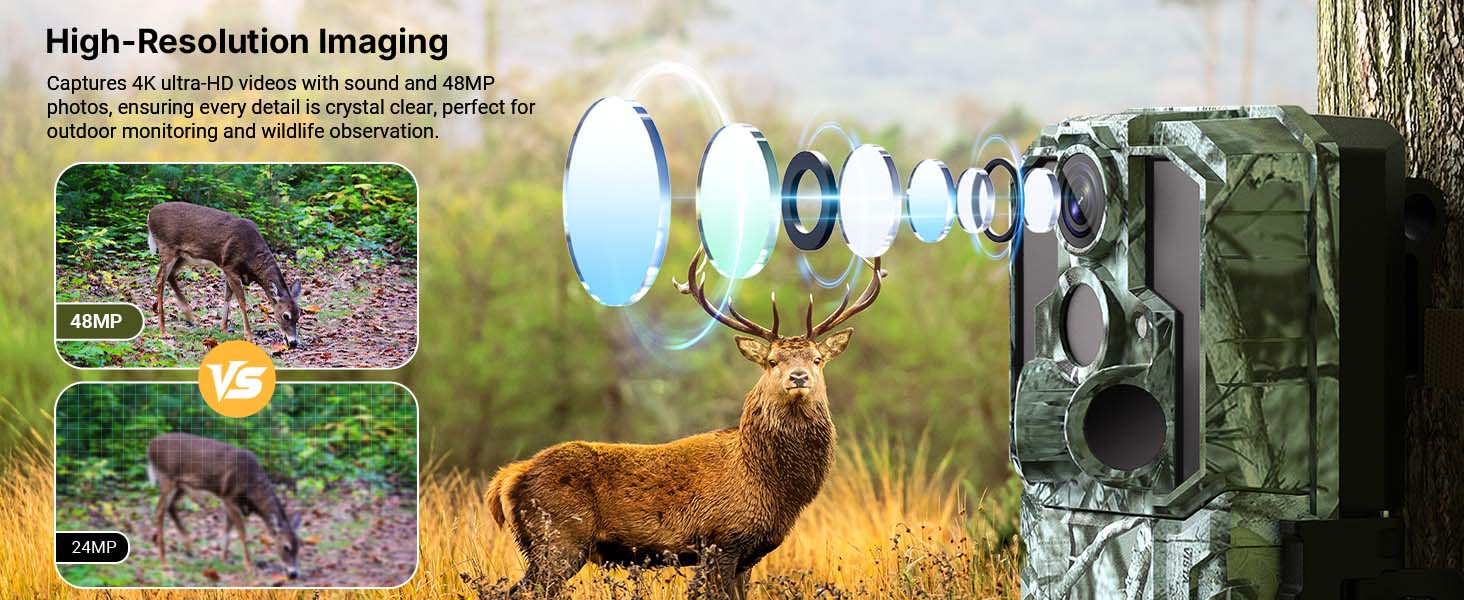 With an impressive trigger speed of less than 0.2 seconds, the wildlife camera ensures you never miss a crucial moment. Capture fast-moving animals with precision and ease, ensuring every critical moment is recorded.